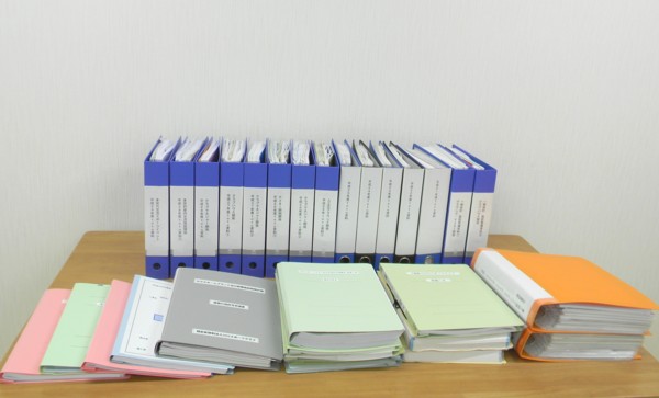 上写真/申請・報告資料の山。このように膨大な量でもファイリングしてまとめておけば、当日の調査担当者もチェックしやすい。担当者は1日で複数のクラブを視察したり、東京へ日帰りも多いらしい。調査を受けるクラブ側も、時間を短縮出来るよう事前にしっかりと準備しておきたい。