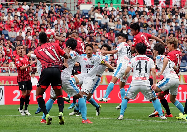 上写真/2019年10月26日、JリーグYBCルヴァンカップ決勝対川崎フロンターレ戦、後半追加タイム5分、札幌右CKからMF深井(右から3人目の上の8番)が、ヘディングで延長戦に持ち込む値千金の同点ゴール(2−2)を決めた。中央左川崎FW小林(11番)らが守り切れなかった。試合はこの後延長戦でも互いに加点し3−3でPK戦に入り4−5で札幌は破れ準優勝。