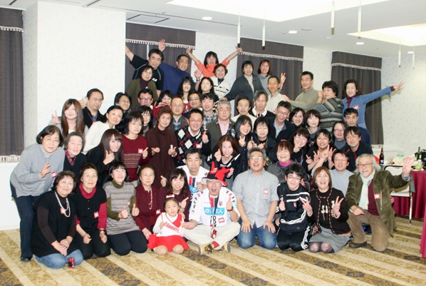 札幌市職員、山本雄樹さん夫妻を中心とする熱烈コンサドーレ札幌のサポーター(通称山本組)の恒例の大忘年会が昨年12月25日、札幌市中央区のホテル・ノースシティーで約60人が参加して開かれた。
