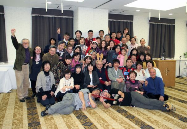 ヨーデル山本こと山本雄樹さんご夫妻を中心とするコンサドーレ札幌の熱烈サポーター軍団“コンサ一家山本組”の忘年会が昨年12月22日、札幌市中央区のホテルノースシティで行われた。