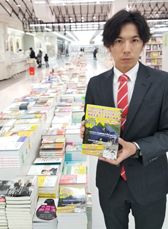 上写真/陳列された書籍の前で本書を手に取るコーチャンフォー新川通り店マネージャーの林隆治さん。現在は、店頭に陳列しているのは新川通り店のみだが、コーチャンフォーグループの他店舗でも取り寄せは可能とのこと