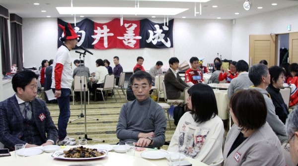 ヨーデル山本で知られる山本雄樹さん夫妻が中心となって毎年行われる熱烈サポーターの集まり、「コンサ一家山本組」の新年会が1月19日(土)、札幌のホテルノースシティで、およそ50人が集まって盛大に開催された。