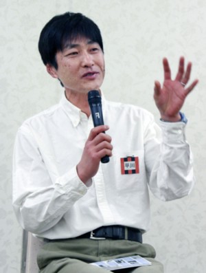 上写真/特別ゲストとしてあいさつする元日本代表で解説者の平川弘さん