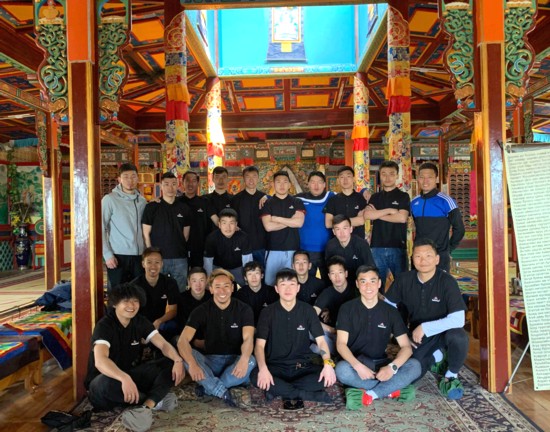 上写真/アリヤバル寺院で毎年恒例の必勝祈願をするFCウランバートルのメンバー