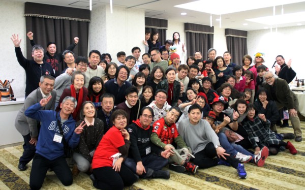 コンサドーレサポーターの間で“ヨーデル山本”として知られる山本雄樹さん夫妻を中心とするサポーターグループで通称「コンサ一家山本組」の新年会が1月12日(日)、札幌市内のホテルノースシティで、熱気あふれる老若男女69人が集まって盛大に行われた。