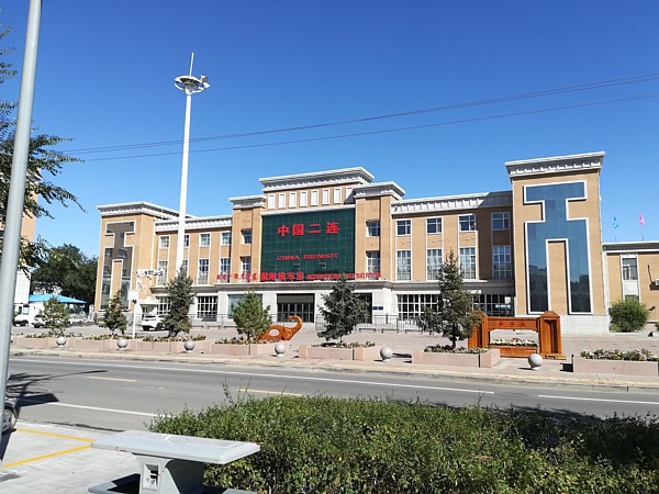 上:下段写真/列車からバスに乗り換えた中国のエレンホト市の駅