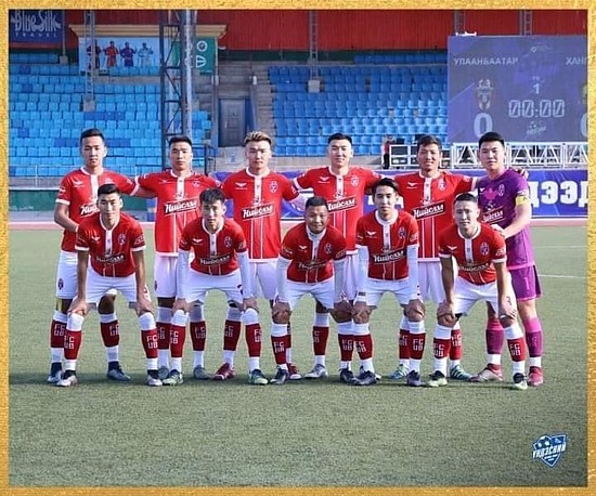 上写真/最終節のスタメンの集合写真。FCウランバートルは最終節で勝利し、3位から2位に逆転した