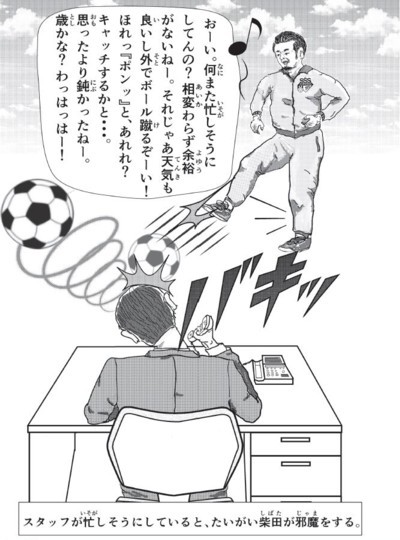 最後には「で、本当に忙しい? へー忙しいんだ。ふーん。じゃそんなに忙しいなら軽くボール蹴るぞーい!」。意味不明に思えるが、難題を前に思考が固まった時には、体を動かすことで脳内の神経伝達物質や神経栄養因子が放出され、思考を変化させることが出来るという最新運動生理学に基づいているようでもある。