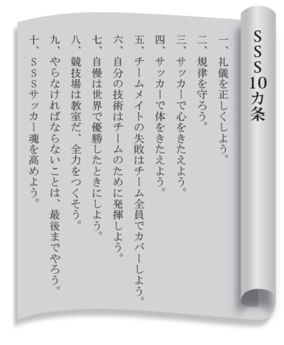 上写真/クラブ創設期に作られた10カ条。現在も、育成方針に記載されており、40年変わらず受け継がれている