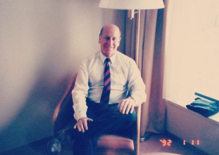 上写真/高校選手権視察後の1992年1月11日、日本のホテルでくつろぐ故サー・ボビー・チャールトン氏(写真はいずれも伊藤庸夫氏提供)