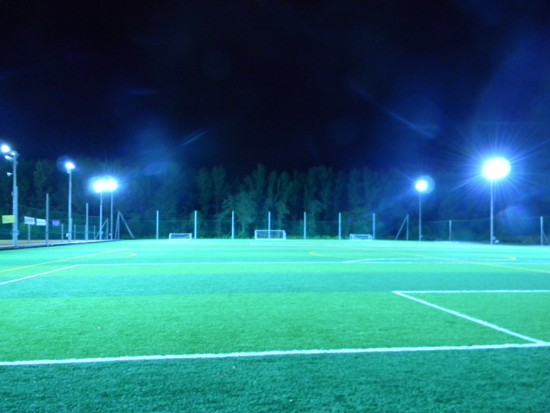 上:上段写真/2014年9月、北海道で初めて屋外用LEDナイター照明(省エネ型単一光源)が設置されたSSSホームグラウンド