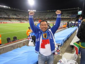 「2010 FIFA ワールドカップTM 南アフリカ大会」に、日本代表を応援すべく現地に飛んだ、札幌市在住の「空飛ぶ税理士」こと、税理士法人有田事務所の有田眞人(45歳)さん。