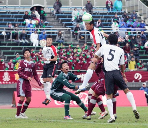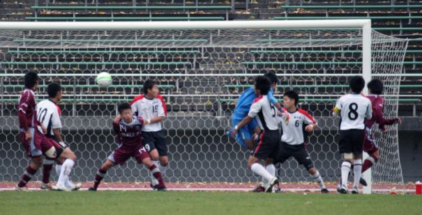 上:上段写真/後半12分旭実右CKからDF遠藤(右端)がヘッドでゴールを決める。これが決勝点となった