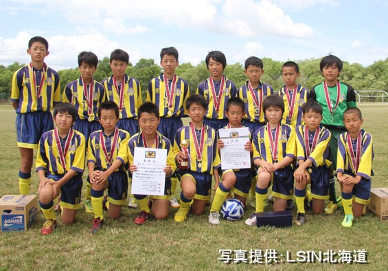 上写真/北海道大会で優勝し、全国大会出場を決めたSSS札幌サッカースクールの子どもたち。6月29日、空知川河川敷サッカー場、写真提供:LSIN北海道