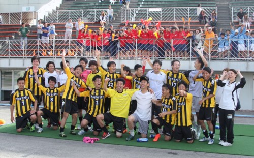 一方、昨年までは、学連の岩見沢教育大と交互に代表になっていた札大は、橋本茂之監督が「フォワードの位置取りがうまく行かなかった」と、こんなはずでは?の表情。隣には、コーチの肩書の木島敦・前ノルブリッツ監督。帝京高−農大、東芝−コンサドーレでプレーした元気印。「やー」とあいさつすると、「こんなはずでは」と照れながら「ベテランで高度な技術を持った選手が多い(ノルブリッツ)差ですかね」と、次の全日本大学選手権に向けて、気持ちを切り替えていた。