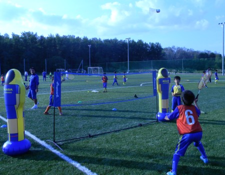 上:上段写真/9月23日の感謝イベントで屋外バドミントンに夢中となる子どもたち