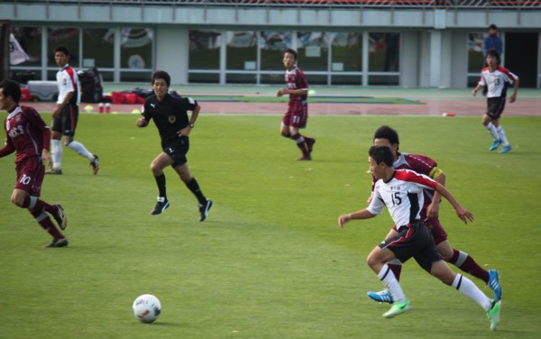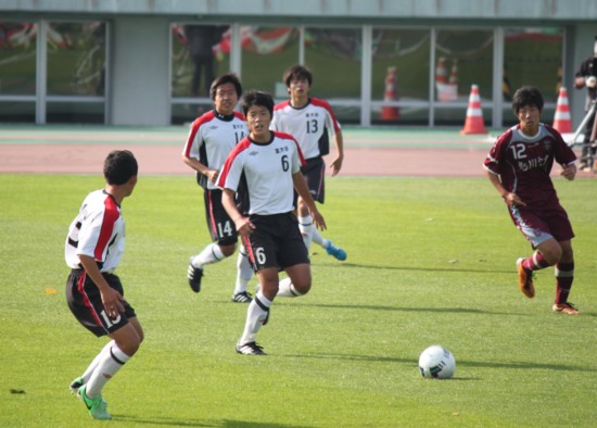 プリンスでの雪辱を果たしたい旭実は先にゲームを動かそうと、MF8番池田を中心にサイド攻撃でゴールを狙う。対する道大谷室蘭はDF3番深井、5番丹野を中心とした守備が光り、前半を0−0で折り返す。