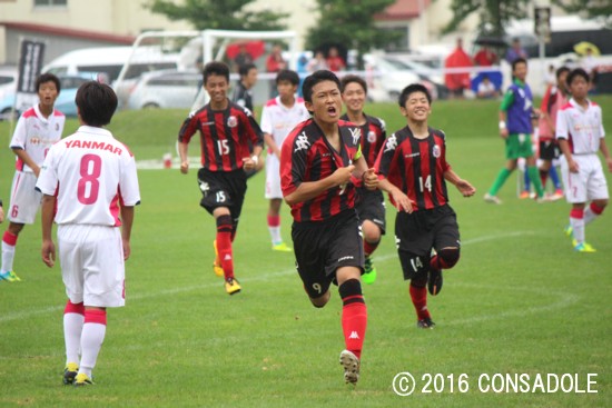 20日のラウンド16、コンサドーレ札幌はセレッソ大阪西U−15(関西地域3位)と対戦。コンサドーレ札幌は前半を1−0のリードで折り返すと、後半には2得点をあげ3−0とする。意地を見せるセレッソに1点返されるがそのまま3−1で勝利した。