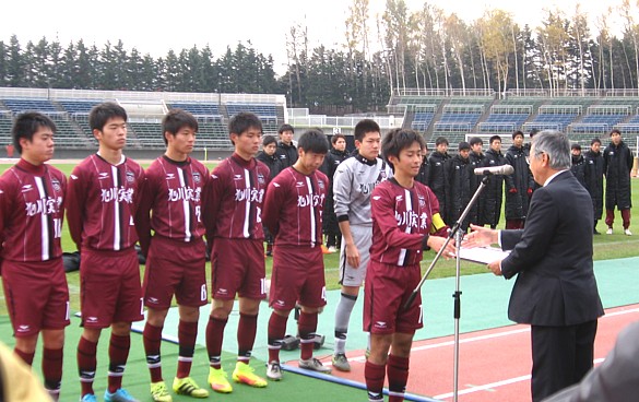 決勝は前日の準決勝で北海を延長戦の末1−0で破った札大谷と、東海大付属札幌校を80分で退けた旭実とでは立ち上がりの勢いが違った。旭実が5分に先制をすると21分、27分に連続3得点でリード。動きの鈍い札大谷の守備陣の裏を突いた得点だった。札大谷は後半に選手交代で攻撃陣を増やして反撃に出たが、16分に1点を返したに留まった。