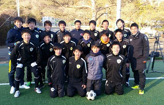 上:上段写真/2017年1月6日、「第1回東北人魂カップin松島」の運営を担当し、3人のJリーガーと一緒に写真に写る塩釜FCユースのメンバー