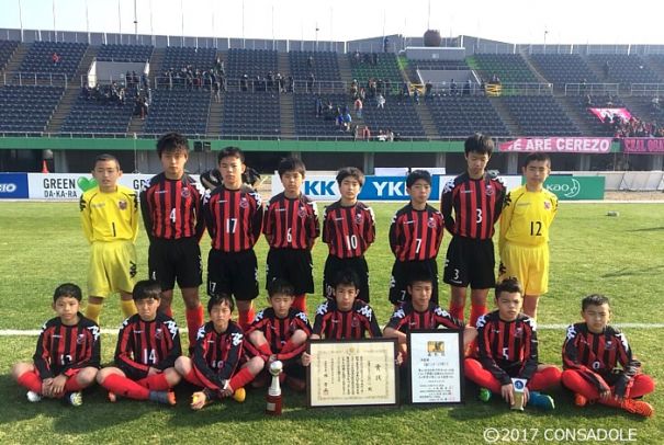 上写真/全日本少年サッカー大会決勝大会で準優勝となった北海道コンサドーレ札幌U−12EASTのメンバー。12月29日、鴨池陸上競技場、写真提供:株式会社コンサドーレ
