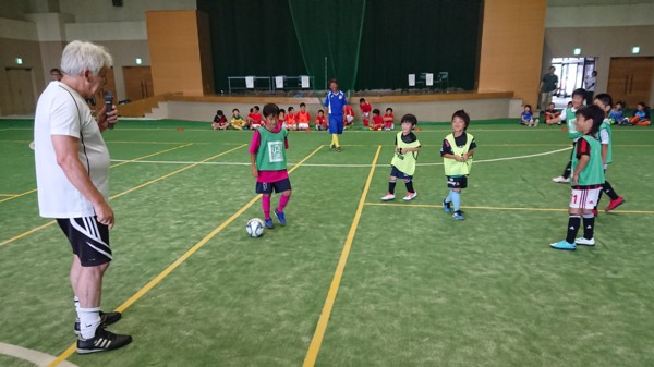 昼の時間帯に行われた指導者や保護者向けの講話では、ブラジルの発想豊かなサッカー動画を流し、マリーニョ氏は「子どもたちが上の学年と競争できる環境と、試合の中で冒険(チャレンジ)できる環境を与えること、そして指導者が個性豊かなエンターテイナーを育てる意識が必要」と、日本サッカーの次世代の育成を熱く語る。