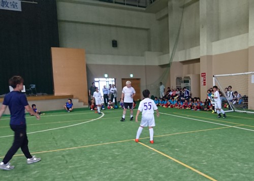 午後から行われた子どもたち同士の交流試合では、様々なフェイントや思い切りのいいドリブルなど、チャレンジする姿勢も多く見られ、観戦者も目を細めていた。