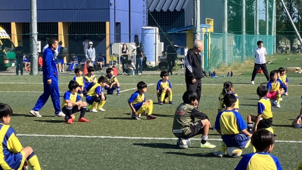 木村氏は子どもたちを担当し、金田氏は大人向けのサッカークリニックを同時に実施。その後は金田氏、マリーニョ氏とスタッフがチームを組み、子どもたちとの交流ゲームで妙技を披露、子供たちの歓声が秋の空に響いた。