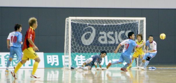 この試合、前半7分辻良樹のゴールで先制すると13分水上、18分嵯峨祐太、さらに19分には期待の新人、18歳の室田祐希が初ゴールを決めるなど主導権をにぎった。前半を4−1と終えたエスポラーダは後半、途中からパワープレーに切り替えたペスカドーラの追撃を1点に抑え、逆に水上のハットトリックなどで突き放した。