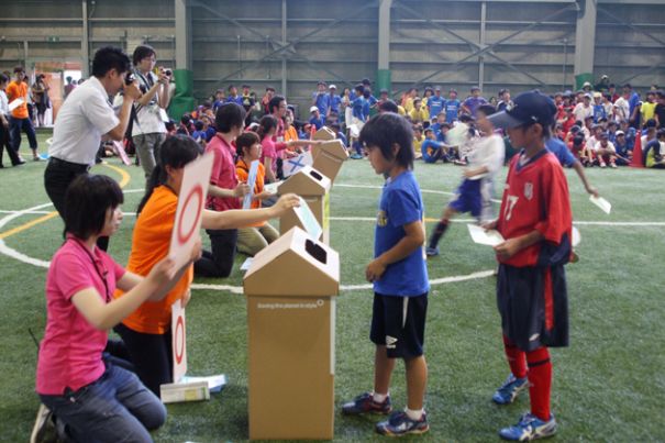 午前中は、札幌市などでつくる「かんきょうみらいカップ2011」が札幌アミューズメントパークで行われ、小学生がフットサルやクイズで「かんきょう問題」を考えた。