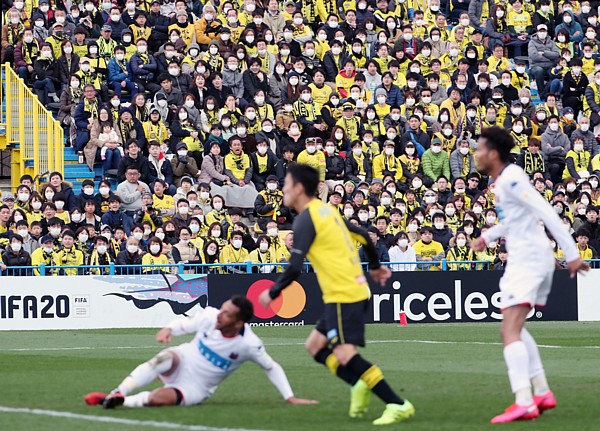 一方、下写真は昨年2月22日の開幕、柏レイソル戦の写真を見てください。こちらは正面の角度ですので、完全に“密”です。