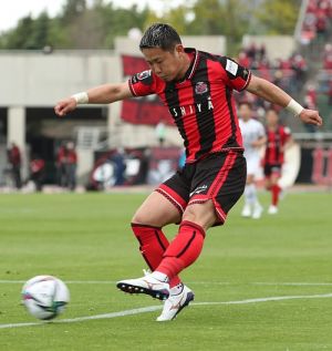 右写真/得意の左足でパスを出すDF福森。この日だけでなく、福森の左足からは多くのゴールシーンが生まれる
