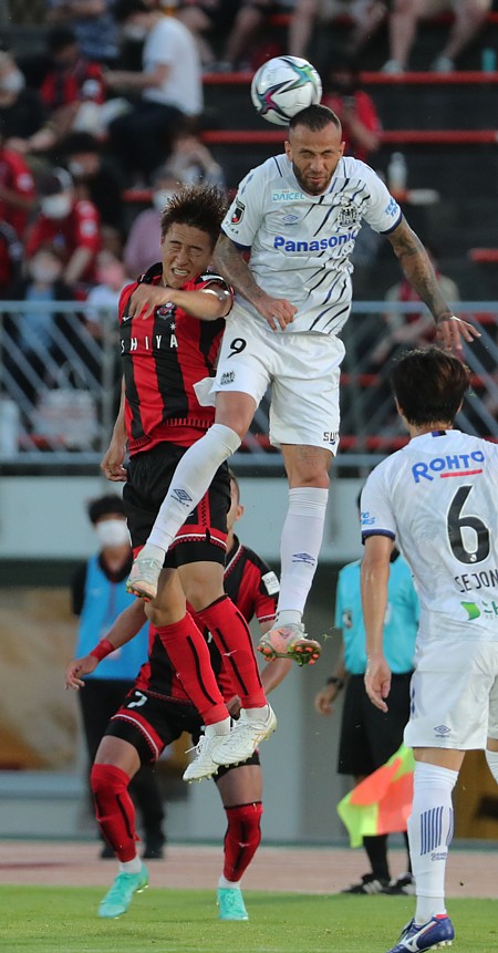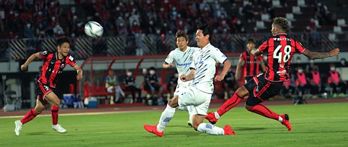 一方、ガンバは、5月に宮本恒靖監督が更迭され、2012年のG大阪監督・松波正信氏(2014−15年、J3ガイナーレ鳥取監督)が招聘された。さらにガンバ自体の「新型コロナウイルス発症」などで「休部」。最近、中2,3日での試合が多く、苦戦が続いていた。この日は、前節からのスタメンを5人代えての「脱出」で挑んできた。