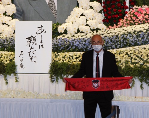 午後3時から同5時までの式典には、政財界をはじめ、サッカー関係者ら1,500人が参列した。祭壇には故人の生前の写真や映像、故人が手掛けた「白い恋人」など商品、さらにコンサドーレのユニホームなど遺品が多数展示されていた。