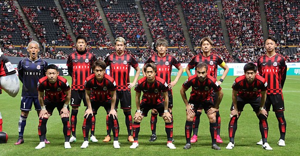 上写真/先発メンバーをこの位置で撮れるようになったのは2年振りぐらいですね。前列左からMF菅、高嶺、駒井、FWガブリエル・シャビエル、MF深井、後列左からGK菅野(1番)、DF田中(2番)、福森、MF金子、DF宮澤、MF荒野