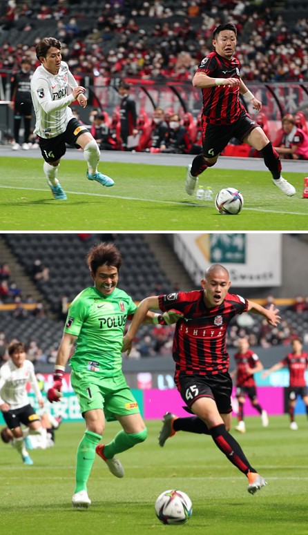 0−1で始まった後半。左の定位置・菅大輝の突進が目立つ。札幌は右サイドのDF田中駿から金子のパスワークで「攻撃の起点」を作った。中央の深井−駒井−高嶺のパスワークが「ままにならない」。中央突破は出来ない。興梠が居ればと「フッと思った」が、「移籍の条件」で対浦和戦には出場が制限されており、「致し方ない」。
