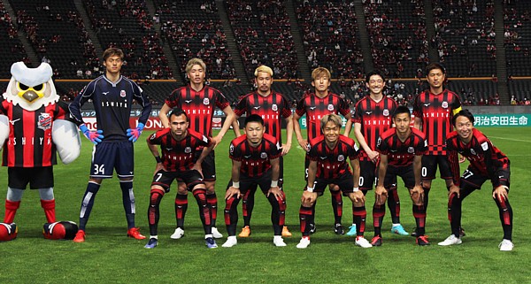 上写真/前列左からMFルーカス・フェルナンデス(7番)、MF菅、駒井、青木、荒野(27番)、後列左からGK中野(34番)、DF中村、福森、MF金子、DF西、宮澤