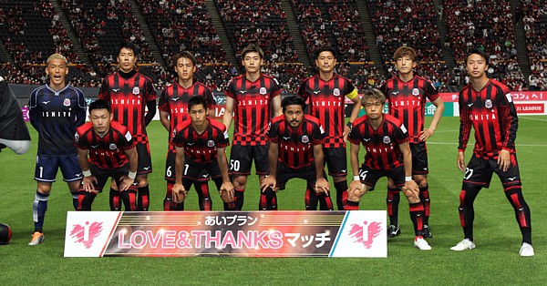 上写真/前列左からMF菅、青木、FW興梠、MF駒井(14番)、後列左からGK菅野(1番)、DF田中駿、高嶺、岡村(50番)、MF宮澤、金子、右端MF荒野(27番)