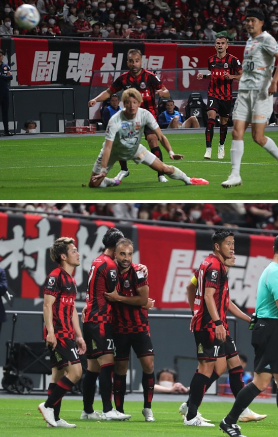 試合を動かしたのは札幌。41分、DF岡村が右側のつなぎからトップのシャビエルに渡り、相手DFのタイミングを外しシュート。ゴール左上に吸い込まれ均衡を破った。この後も札幌が優位に試合を進める。1−0。アディショナルタイム3分で前半終了。