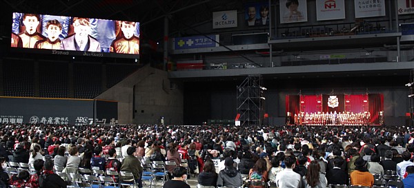 「恒例の―」と行きたいところだが、コロナ禍の2年を「うちわ」で済まし3度目の正直は7年ぶりの「札幌ドーム」で約4,000人を前にお披露目した。正面バックスタンドにステージを造り、見上げるようにセンターサークル当たりに「観衆」の椅子が並んだ。