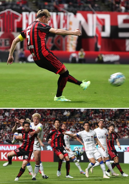 上:上段写真/前半24分、札幌MF福森がFKを蹴る