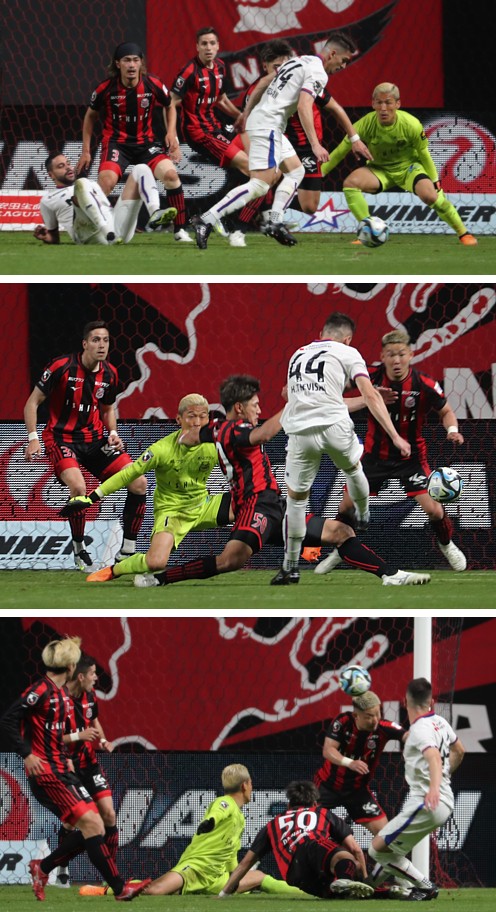 35分、ペナルティーエリア内で、福森が倒される。そのままゲームは流れるが、主審が耳に手を当てVARチェックの「シグナル」が送られる。VARでは福森の足に後方からF東京DFハングーナガンデの足がかかっている。山下主審も確認し、PK判定とした。38分、札幌の金子が決めて3得点連取。3−0のスコアで試合を折り返す。