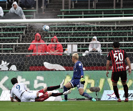 この間に新潟の攻撃に変化。8分、スローインの流れからMF高が右からセンタリング、ゴール前に走り込んで来た背番号9FW鈴木が合わせ、GK菅野は成すすべもなく、1点を献上した。