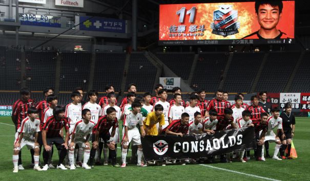 札幌ドームで9月16日、J1第27節北海道コンサドーレ札幌対湘南ベルマーレ戦を前に北海道コンサドーレ札幌OB会「CONSAOLDS」とコンサドーレ釧路U−15がエキシビションマッチを行った。