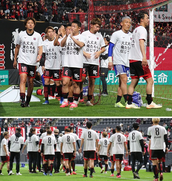 ¡¡¾å¡§¾åÃʼ̿¿¡¿»î¹ç½ªÎ»¸å¡¢»¥ËÚ¤ÎÁª¼ê¤¿¤Á¤ÏÉé½ý¤·¤Æ¼ê½Ñ¤ò¼õ¤±¤¿¿¼°æÁª¼ê¤ò·ãÎ夹¤ë¤¿¤á¡¢¡ÖÂç¾æÉס¢²¶¤¿¤Á¤â¿®¤¸¤Æ¤ë¡×¤È½ñ¤«¤ì¤¿¥·¥ã¥Ä¤òÃ夯¡¢¥µ¥Ý¡¼¥¿¡¼¤Ø¤Î¤¢¤¤¤µ¤Ä¤ËÍ褿¡£º¸¤«¤é£Í£ÆµÜß·¡Ê£±£°ÈÖ¡Ë¡¢ÀõÌî¡Ê£±£¸ÈÖ¡Ë¡¢¿û¡Ê£´ÈÖ¡Ë¡¢£Ä£ÆÊ¡¿¹¡Ê£µÈÖ¡Ë¡¢£Ç£Ë¿ûÌî¡Ê£±ÈÖ¡Ë¡¢£Í£Æ¹ÓÌî¤é