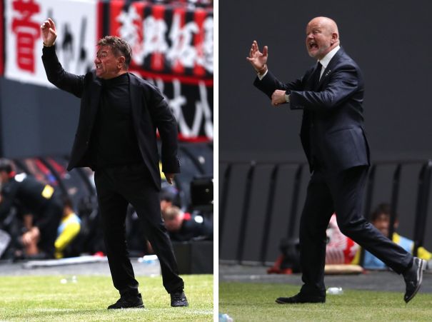 上:右側写真/後半35分、選手に檄を飛ばす浦和のペア・マティアス・ヘグモ監督