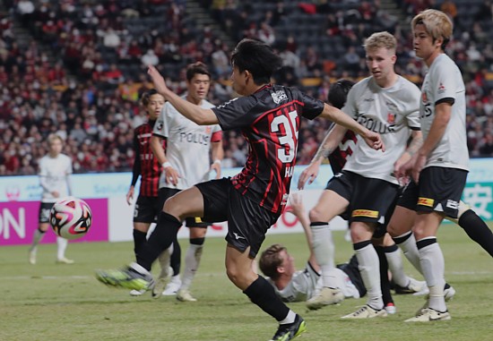 浦和は交代で入ったMF松尾が今度は札幌の右サイドを何度も崩す。26分には左サイドの松尾のクロスから、こちらも交代で入っていたFWチアゴ・サンタナが中央でドンピシャヘッド。わずかに左に外れた。