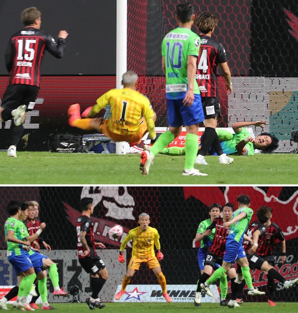 ¡¡¾å¡§²¼Ãʼ̿¿¡¿¸åȾÄɲå¿¥¤¥à£³Ê¬¡¢¾ÅÆî£Ä£Æ¿ù²¬¤Î±¦£Ã£Ë¤«¤é¡¢ÅÓÃæ½Ð¾ì¤·¤Æ¤¤¤¿£Í£Æ°ñÅġʱ¦¤«¤é£³¿ÍÌܡˤ¬¥Ø¥Ã¥É¤Çº¸¤Ø¤¹¤é¤·¤Æ¡¢º£µ¨¿·²ÃÆþ¤·¤¿£Í£ÆÎëÌÚ¤ÎÆ±ÅÀ¥´¡¼¥ë¤Ë¤Ä¤Ê¤²¤ë¡¢Ãæ±û»¥Ëڣǣ˿ûÌî¡Ê£±ÈÖ¡Ë