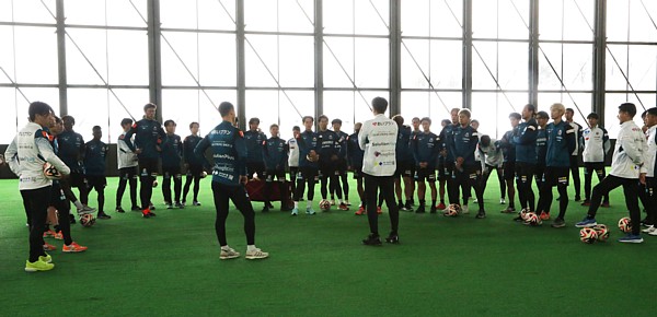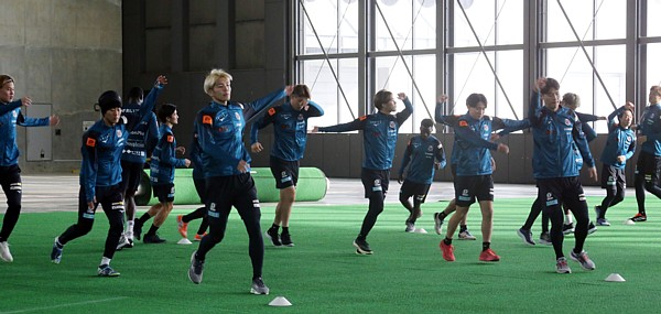 選手たちが出て来るまでかなり時間があった。練習前のミーティングで岩政大樹新監督が、昨年の試合を見た上で、自ら作成した約10分間の映像を見せ「選手、コーチ陣全員に落とし込んで欲しい」という意図があったようだ。
