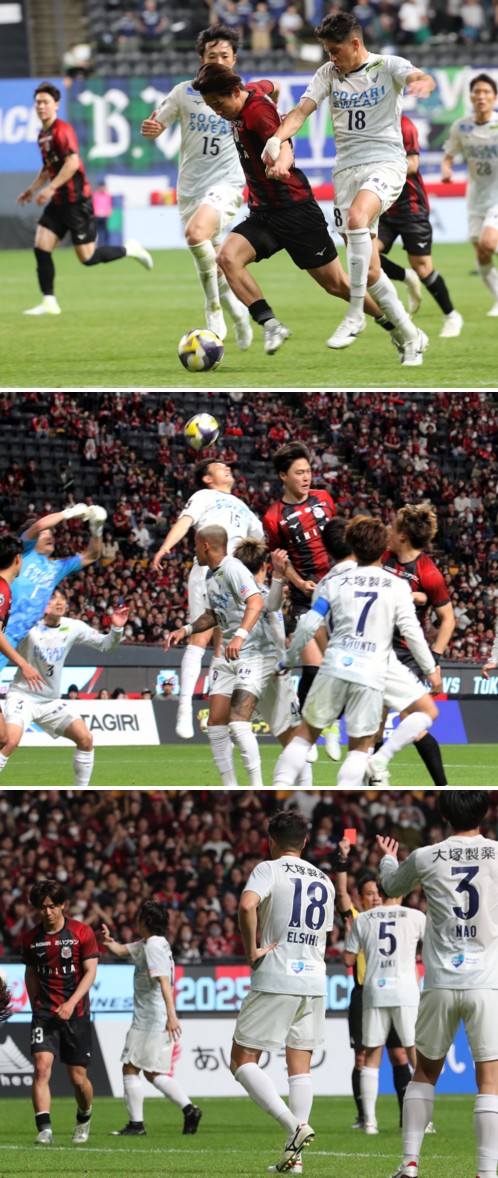 ¡¡¾å¡§ÃæÃʼ̿¿¡¿¸åȾ£²£µÊ¬¡¢»¥ËÚº¸£Ã£Ë¤«¤é¤Î¹¶·â¤ËÅÓÃæ½Ð¾ì¤·¤Æ¤¤¤¿£Æ£×¥¥à¡¦¥´¥ó¥Ò¡ÊÃæ±û±¦¡Ë¤ÈÆÁÅç£Ä£Æ»³±Û¡Ê£±£µÈ֡ˤ¬¥¸¥ã¥ó¥×¤·¤Æ¶¥¤ë¤¬¤É¤Á¤é¤â¿¨¤ì¤º¡¢º¸ÆÁÅç£Ç£ËÅÄÃæ¡¢£·È֤ϣͣƻù¶Ì